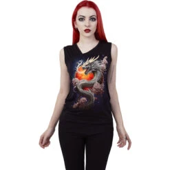 Spiral RAVEN WISE – WINGS – Gathered Shoulder Slant Vest Black