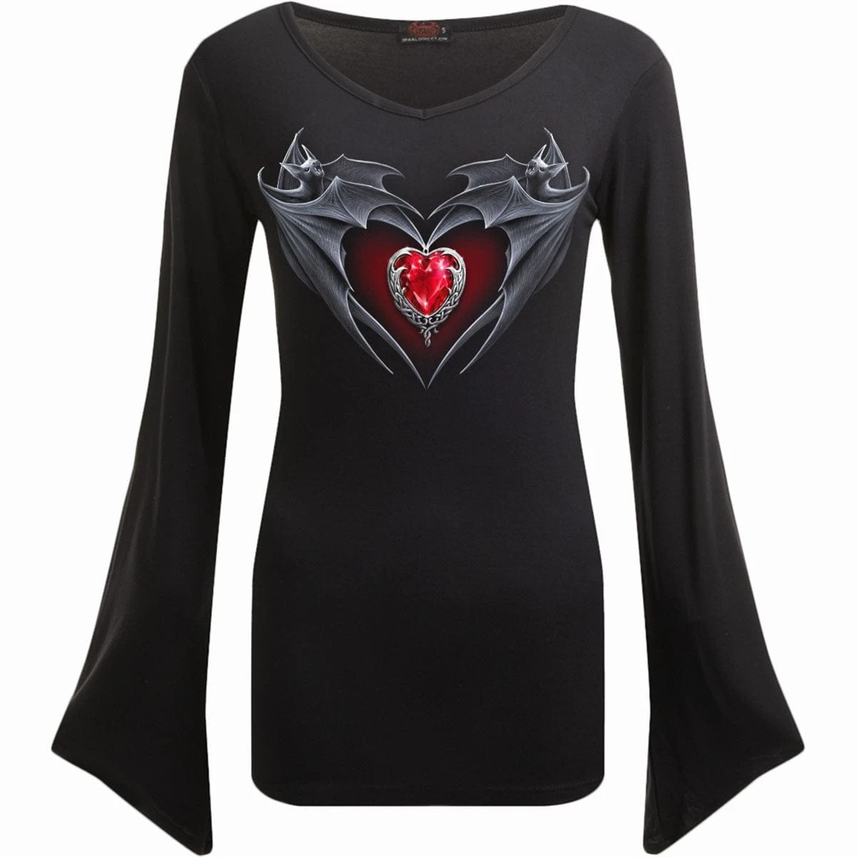 Spiral BAT’S HEART – V Neck Goth Sleeve Top Black