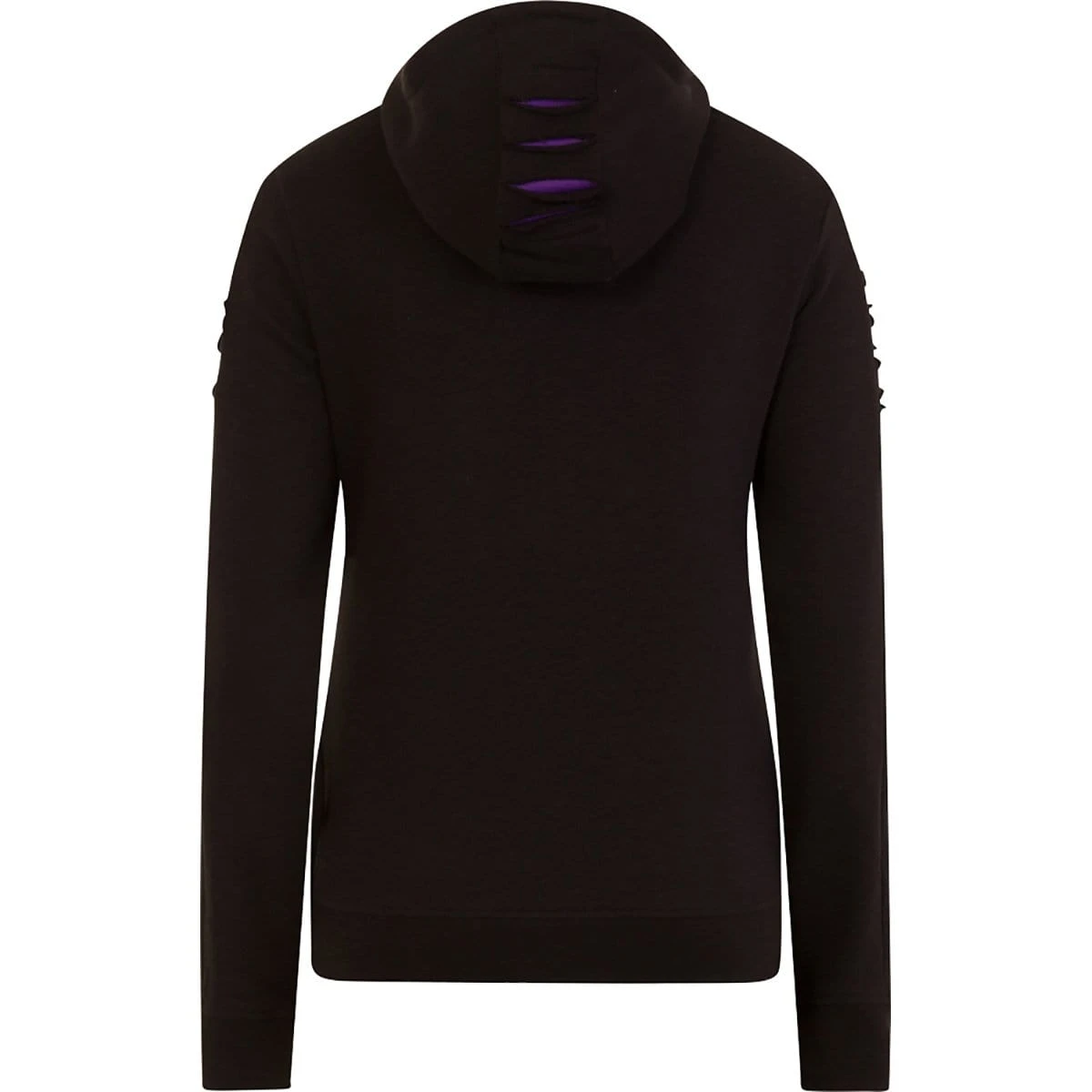 A cute kitten with purple eyes peeks out of the slashed top. Large Hood Ripped Hoody Purple-Black is made of Top Quality 100% Cotton, Fleece using skin friendly, Azo-free, Reactive dyes.