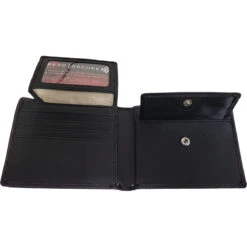 BiFold Wallet with RFID Blocking and Gift Box is made of Soft Feel Polyurethane Faux Leather, 13cm x 10cm x 2cm using 8 cards, 2 notes and a driving licence window compartment. featuring RFID Blocking to protect against identity theft and stop theives from scanning your contactless payment cards and ID’s.