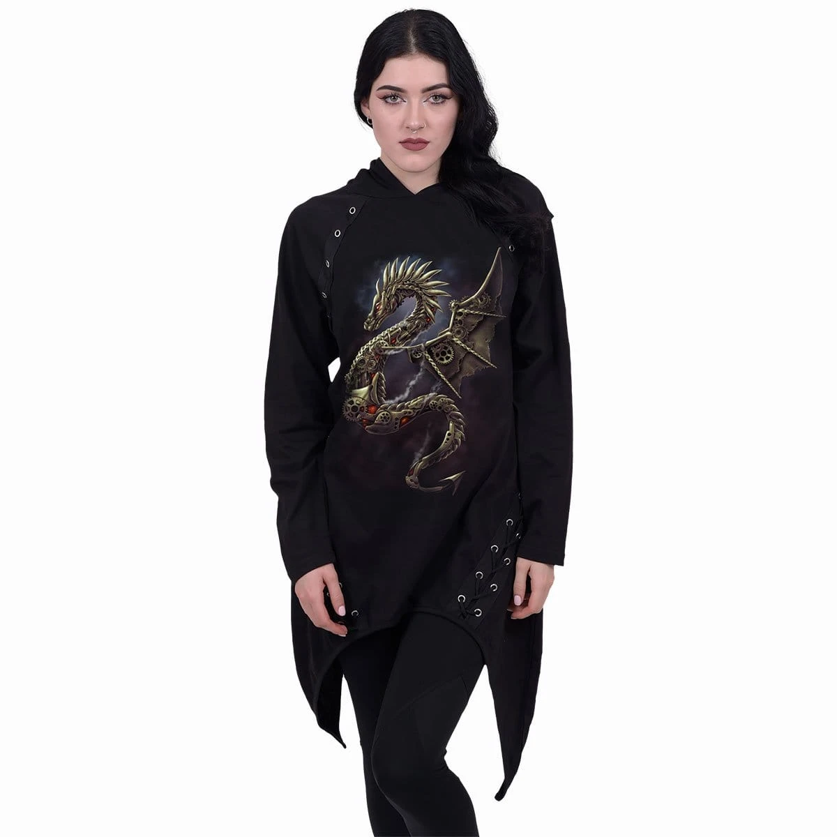Spiral DRAGON COGS – Laceup Sherwood Hoody With Teardrop Hem