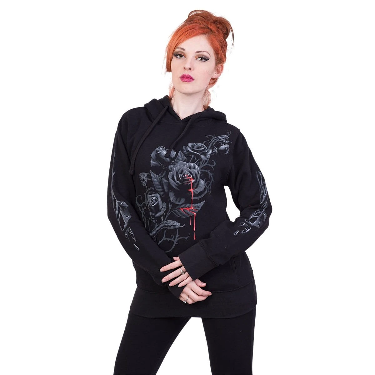 Beware of the attraction of these beautiful yet deadly roses, their touch can be fatal. Side Pocket Stitched Hoody Black is made of Top Quality 100% Cotton, Fleece using skin friendly, Azo-free, Reactive dyes.