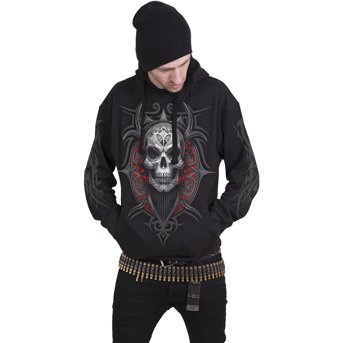 Death is as much a part of life as birth and thus equally sacred. Follow the high priestess to the temple and lay your offerings at the shrine of Santa Muerte. Offer up your prayers and pay your respects to the lady of the dead that you may be granted her divine protection. Hoody Black is made of Top Quality 100% Cotton, Fleece using skin friendly, Azo-free, Reactive dyes.
