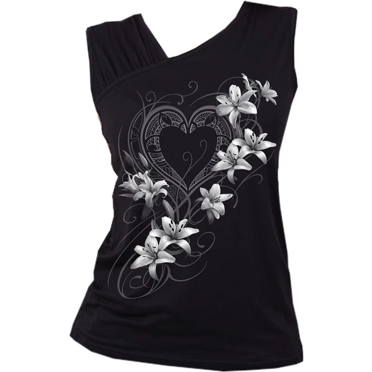 Spiral PURE OF HEART – Gathered Shoulder Slant Vest Black
